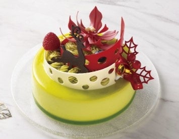 濃厚なピスタチオのクリームやムースに、カシス、赤葡萄、グリオットチェリーを合わせ、生地にきなこを加えた豊かな味わいのクリスマスガトー。