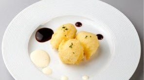牛乳で煮込んだマンジョッカをミキサーにかけて、ナツメグ、卵、パルメザンチーズを加えたフリットに仕上げました。てりやきソースとアイオリソースでお楽しみください。