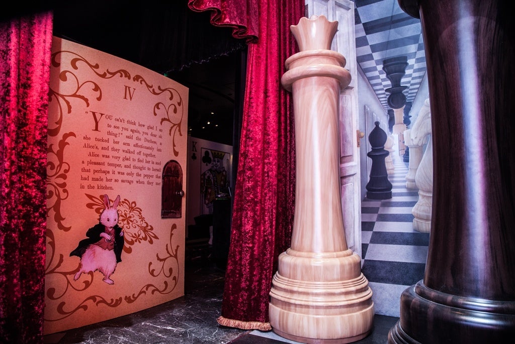 このメインフロアを中心として、大きな大きなトランプに囲まれるソファー席やハートの女王様ご自慢の庭を模したテーブル席など、進めば進むほど、テーマパークさながらの個性的な空間に出会い魅了されてしまいます。