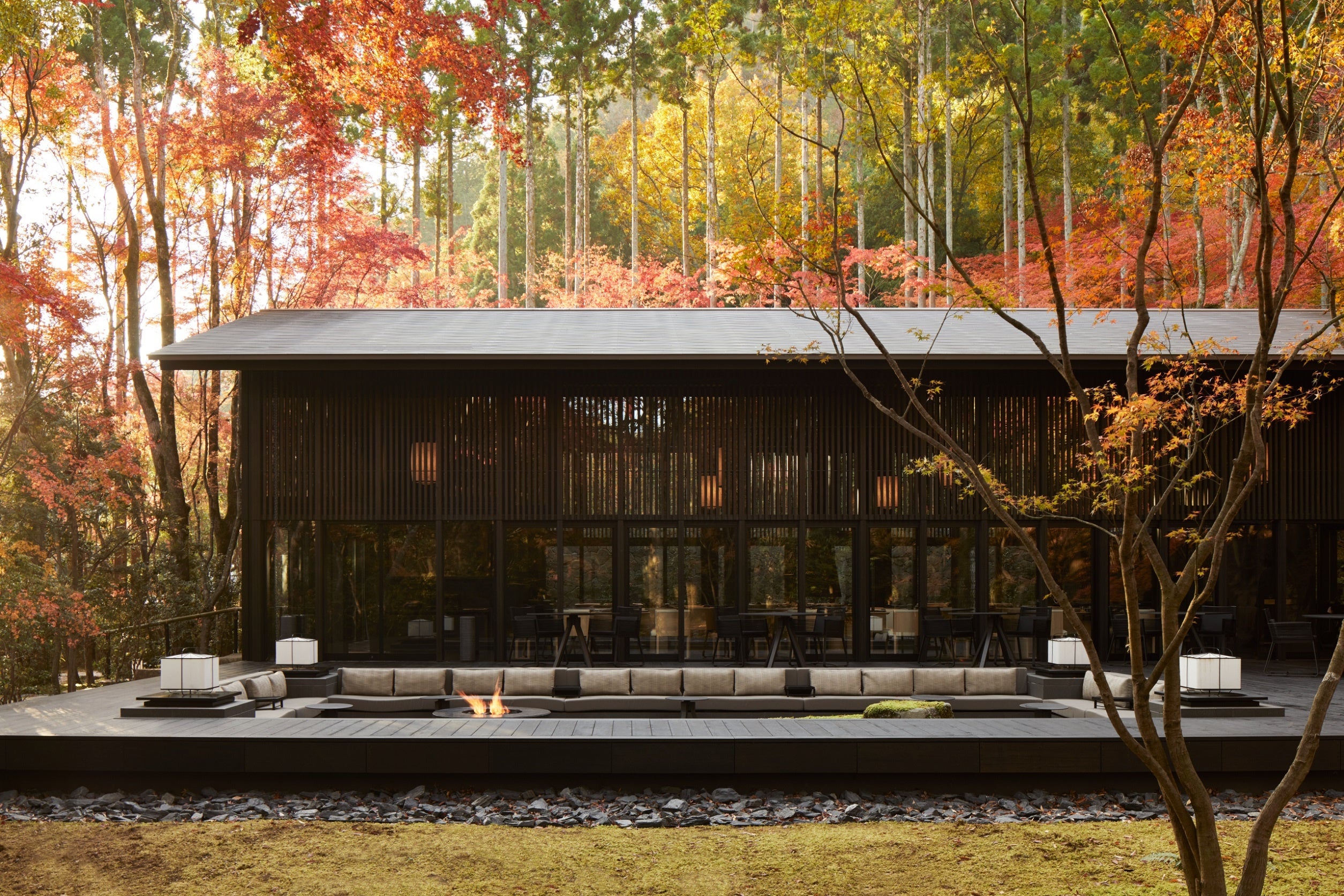 2019年11月1日に開業したアマン京都は、京都の北、左大文字山から続く鷹峯三山の麓に息づく、密かな森の庭に佇むリゾートです。約2万4千平方メートルの広い敷地内には、アライバル棟、リビング棟(オールデイダイニング)、レストラン棟(日本料理)、天然温泉を備えるスパ棟、そして、が森の庭に溶け込むように点在しています。隠れ家のようなアマン京都のモダンな建築と、時を経てなお凛と残る庭が織り成す景観で、より奥深い古都の魅力に触れる滞在をご提供いたします。