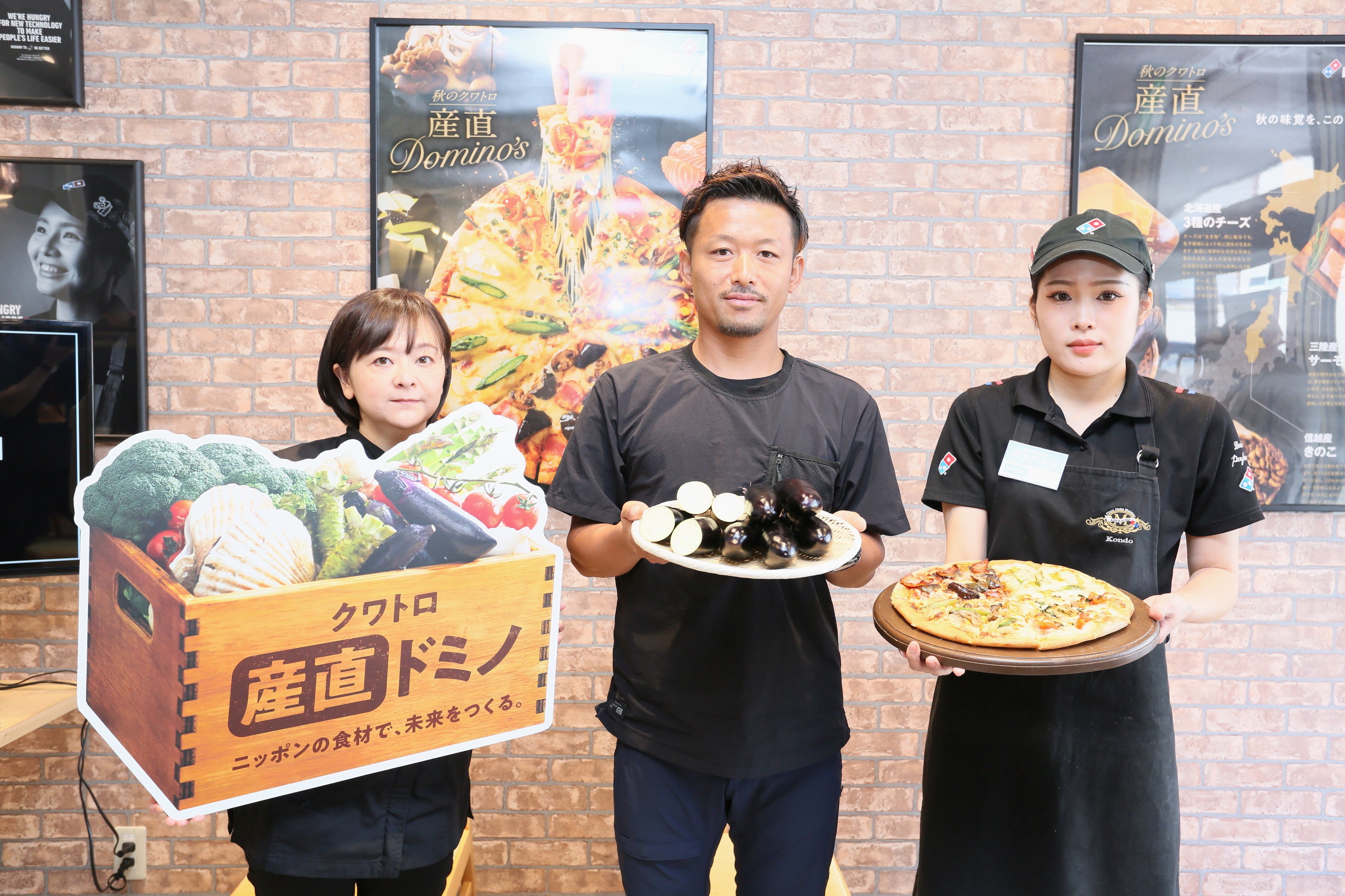 『秋のクワトロ・産直ドミノ』の発売を記念して、10月4日(火)に熊本県内のドミノ・ピザ 熊本迎町店にて開催した発表会では、ドミノ・ピザの商品開発担当者が登壇したほか、農園でナスを育てる生産者の方をお招きし、熊本の地から全国へ向けて、熊本県産ナスの魅力についてたっぷりとトークを繰り広げました。