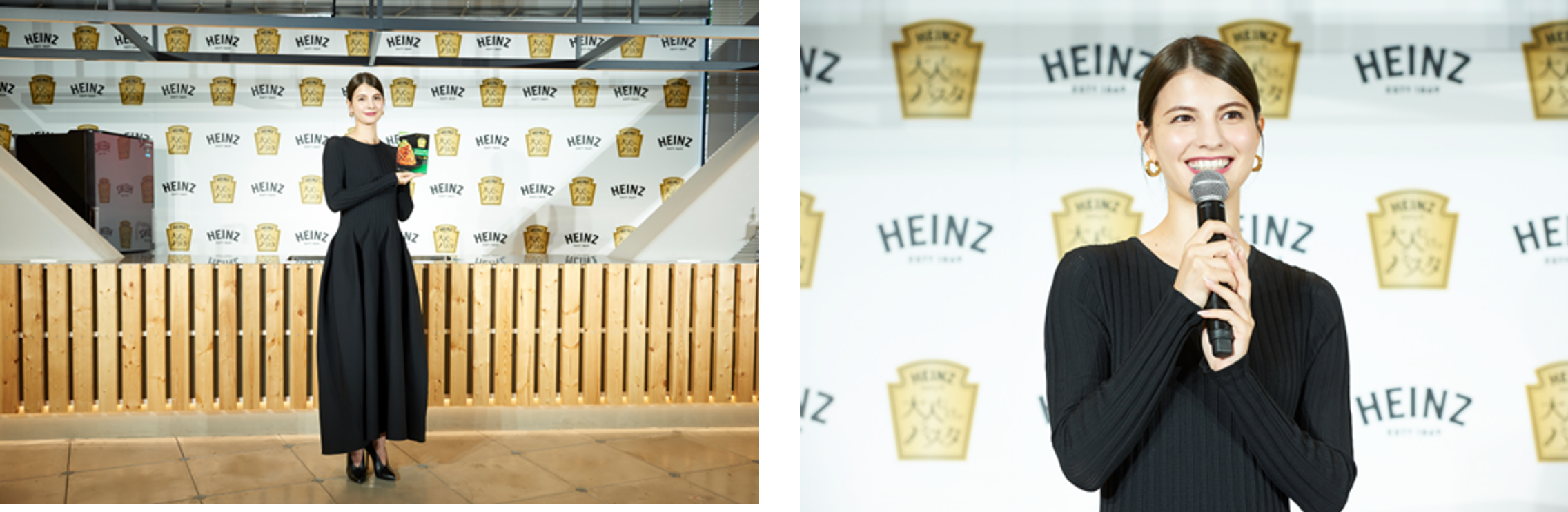 第1部では、ハインツ日本株式会社 代表取締役社長 スティーブン ブリッグスが登壇し、開催にあたっての挨拶と、『大人むけのパスタ』への魅力やこだわりについて紹介。その後、『大人むけのパスタ』の新ブランドアンバサダーに就任したマギーさんが、「ハインツの『大人むけのパスタ』に合わせて大人の雰囲気かつ、家にお友達を呼んでホームパーティをする際に着るような服を意識した」というシックなワンピース姿で登場されると、今回の就任に対して「子供の頃から知っているブランドで嬉しい」と喜びを語っていただきました。
