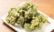 圧倒的な緑色を実現。通常の磯部揚げより海苔を10倍使用いるので風味が違います。