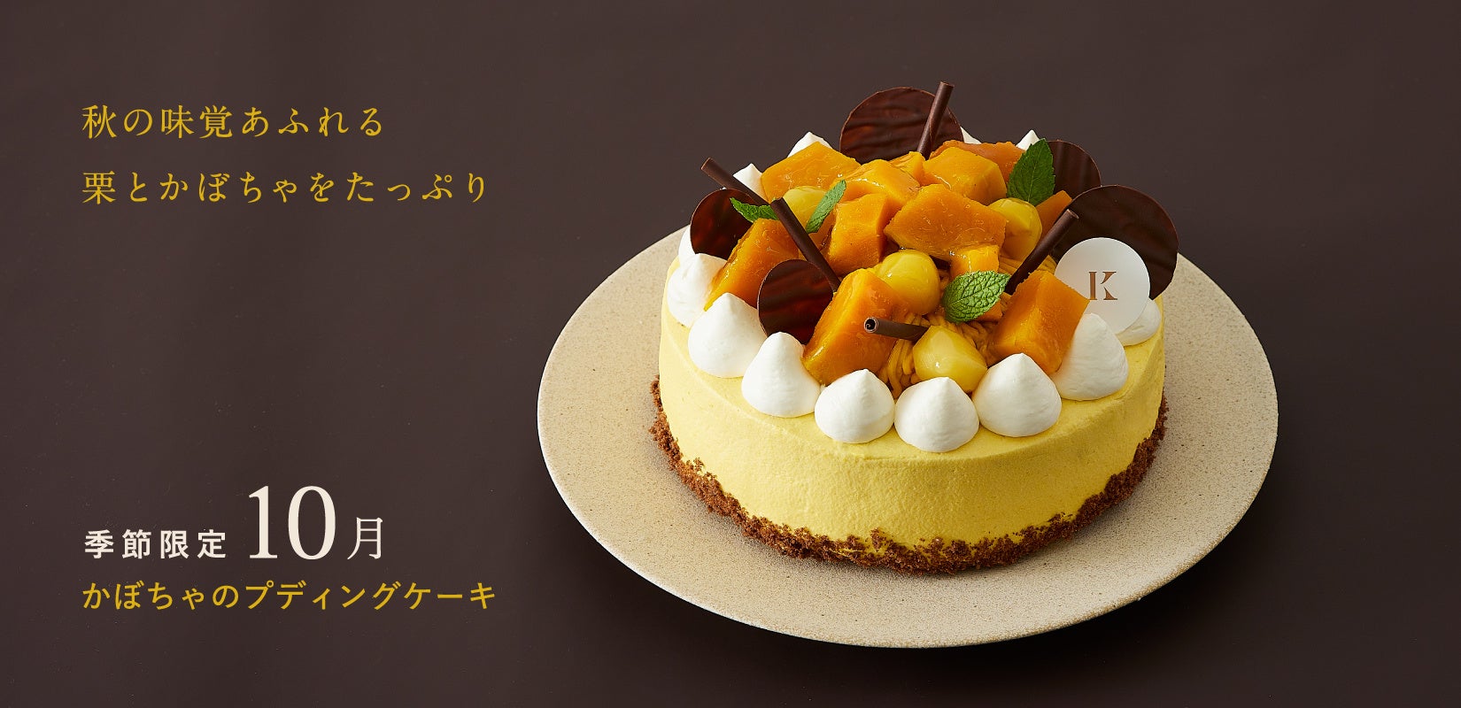 10月は、秋の味覚 ほくほくのかぼちゃをたっぷり使った「かぼちゃのプディングケーキ」です。
