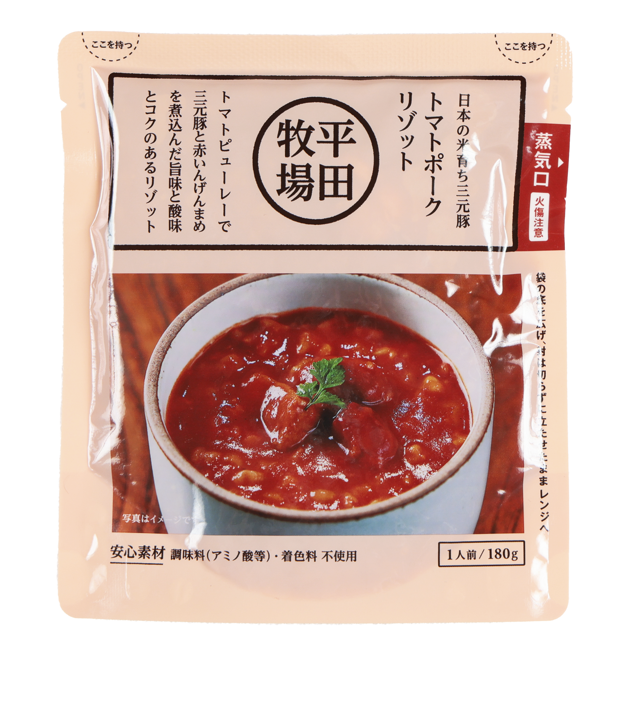 株式会社平田牧場(山形県酒田市/代表取締役 新田嘉七)は、10月7日(金)より、平田牧場三元豚を使用した「日本の米育ち三元豚 トマトポークリゾット」を全国の直営物販店(※一部店舗を除く)、直営オンラインショップ、Amazon/楽天市場の各公式ショップ、及び食べチョク店で新発売します。