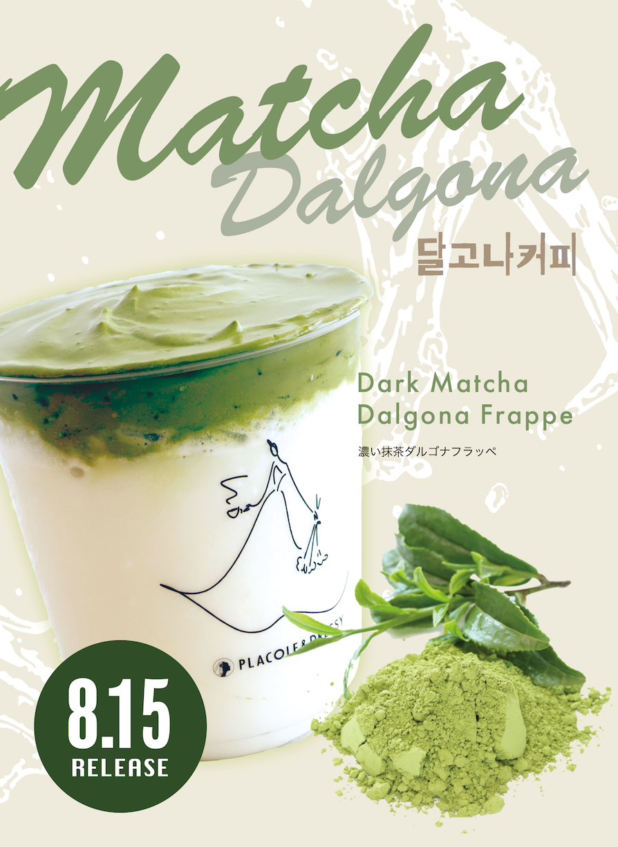 韓国でも大人気の抹茶味。濃厚抹茶と甘いミルク氷のダルゴナ抹茶。混ぜるとまろやかな抹茶フラッペとなっています。抹茶好きにはたまらない味わい。ミルクと本格抹茶のまろやかな味わいをお楽しみいただけます。
