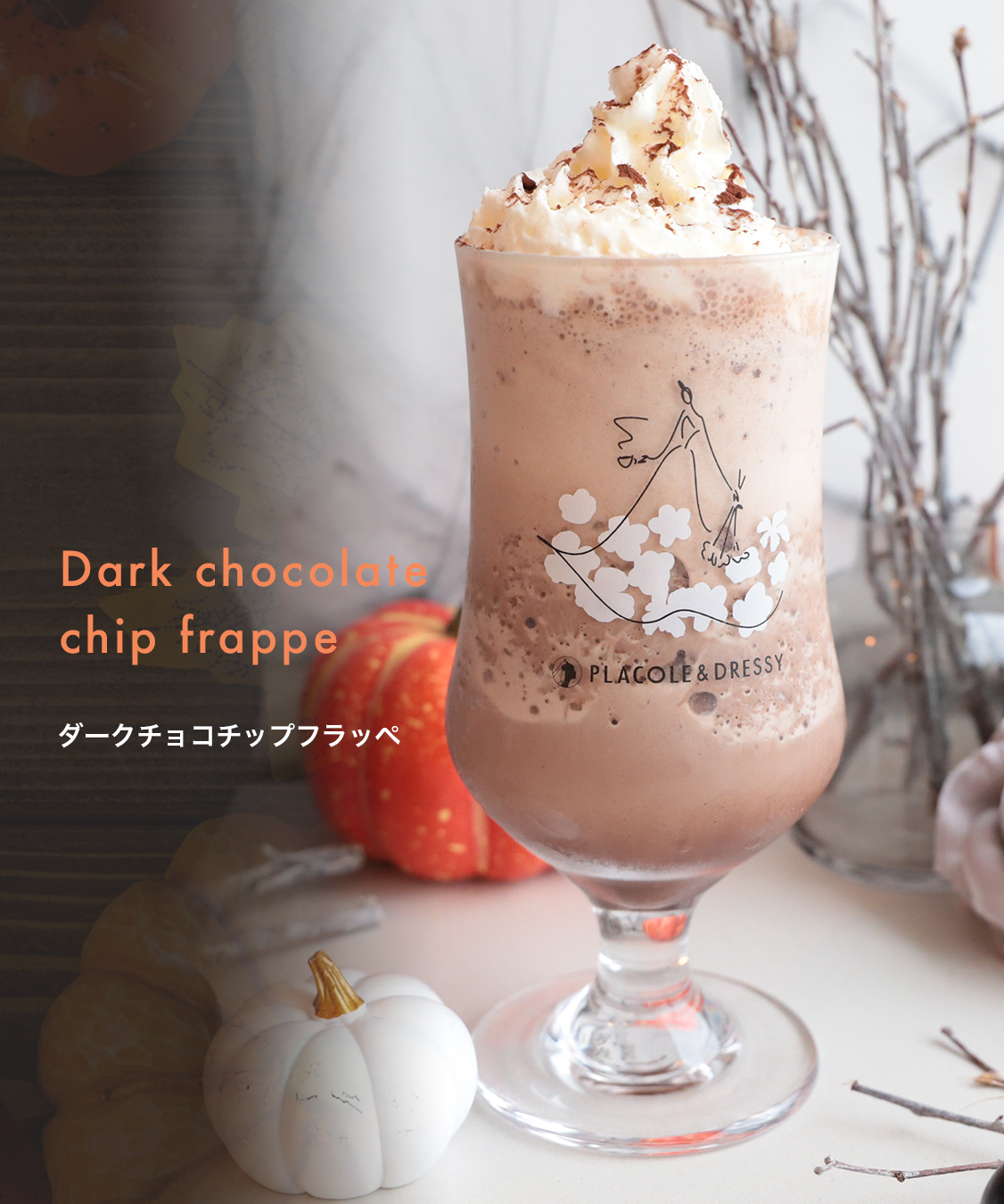『個性が煌めく魔法の言葉』 “100人の人生に100通りに煌めく魔法をかける”をテーマに創設された古都鎌倉発のラグジュアリーブランド、PLACOLE&DRESSY(プラコレ&ドレシー)がプロデュースするカフェ&バー、『お花とドレスと紅茶のお店 DRESSY ROOM&Tea』から10月1日より新作フラッペが登場。大人気のシルキィピーチフラッペとバナナフラッペ、濃い抹茶ダルゴナフラッペ、そしてメロン×メロンジェリーフラッペに次ぐ第5弾は、ダークチョコレートのほろ苦さが引き立ち、ミルクとのハーモニーをお楽しみいただける『ダークチョコチップフラッペ』。
