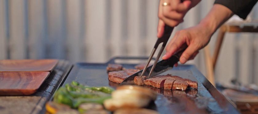 ご自宅はもちろん、貸別荘やプライベートヴィラ、グランピング施設など好きな場所に呼ぶことが可能。いつもは自分で食材を用意しみんなで料理をしている方も、少し贅沢に外の空気を楽しみながら本格鉄板料理を体験できます。