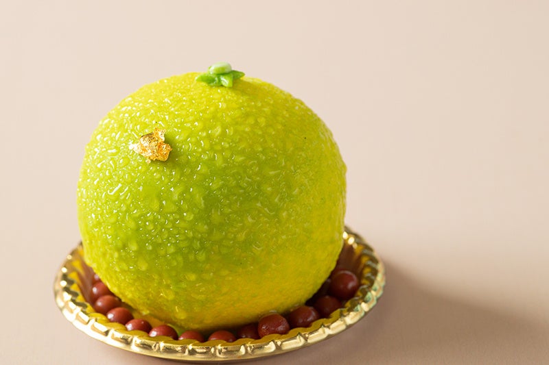 まるでみかんそのもののようなスイーツの中身は、なめらかなチーズムースとホワイトチョコレートスフレ。みかんの皮も果汁もたっぷり使っています。