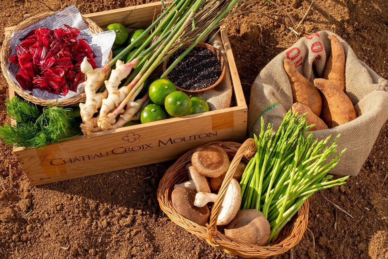 「FARM to TABLE(ファーム トゥ テーブル)」とは、「農場から食卓へ」という意味です。恩納村や近隣市町村の農水産物を取り扱う「おんなの駅」のご協力を得て、8名のシェフが恩納村、読谷村、うるま市の農家さんの畑に出かけて食材を吟味し、素材の良さを引き出す調理法でスペシャルな料理とスイーツ「シェフの一皿」に仕上げます。
