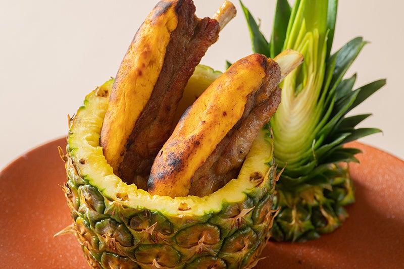 しっとりと甘い黄金芋をペースト状にしてスパイスを効かせ、スペアリブに塗って焼き上げました。豚肉の旨味、黄金芋の甘み、スパイスのバランスの妙味をお楽しみください。