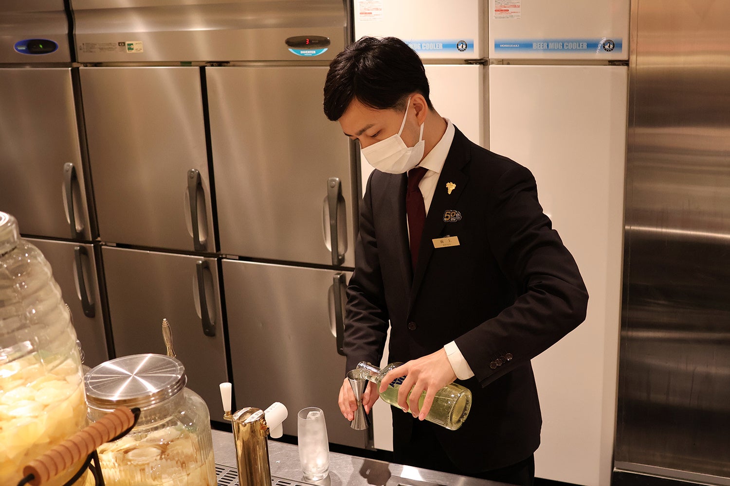コロナ禍での制限で客足が伸び悩むなか、焼肉×ワインの提案を行うソムリエ(写真右)は「ソムリエの知識をワイン以外にも活かすことができるのではないか」と考え、ウォッカやジン、ラム等を使用できる多種多様にアレンジが可能なサワーというメニューに着目しました。