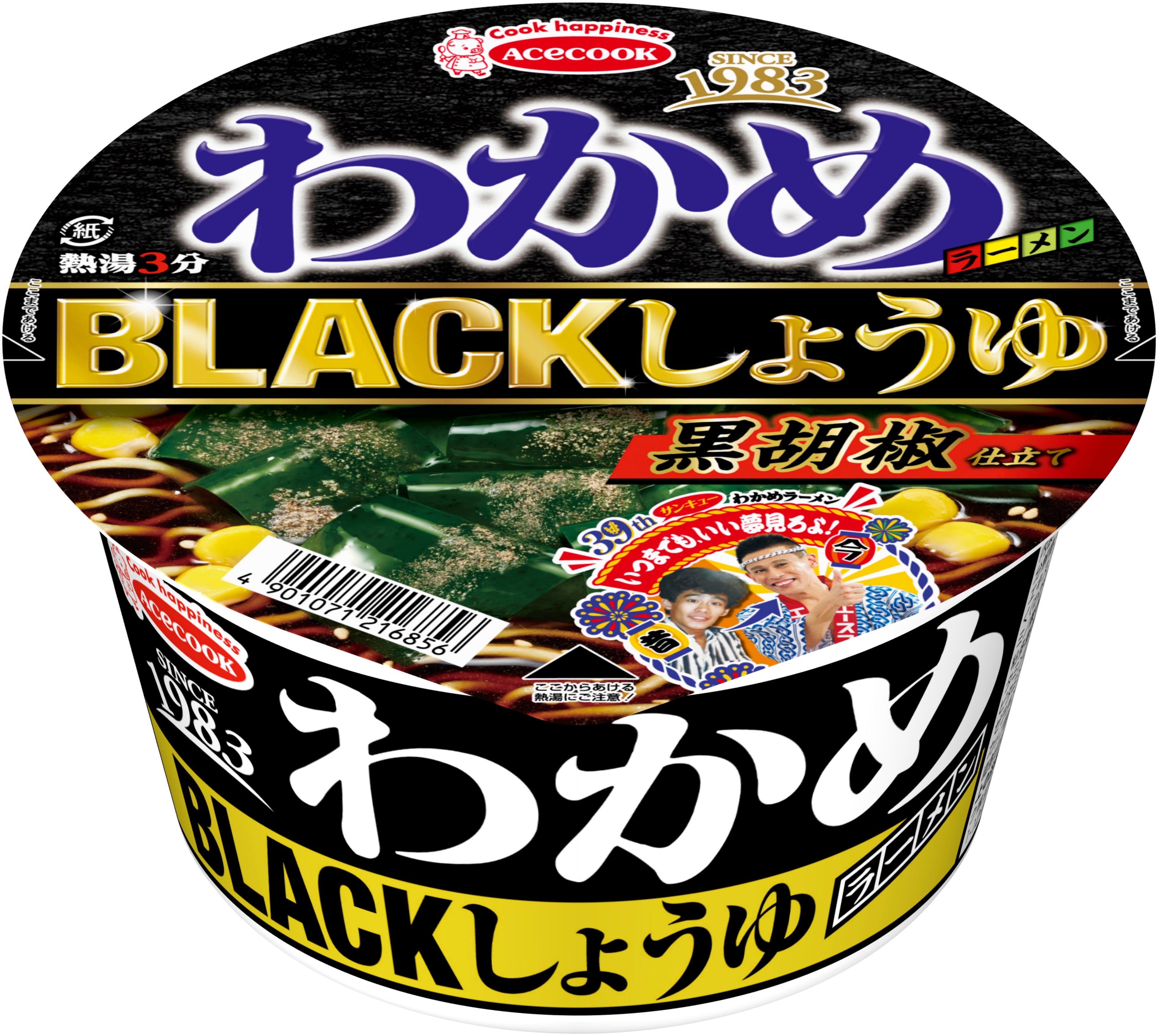 ① 2022年で発売39周年を迎えた「わかめラーメン」より、「ブラックフライデー」をテーマとした、中身もパッケージも“黒”にこだわったBLACKな一杯が登場!