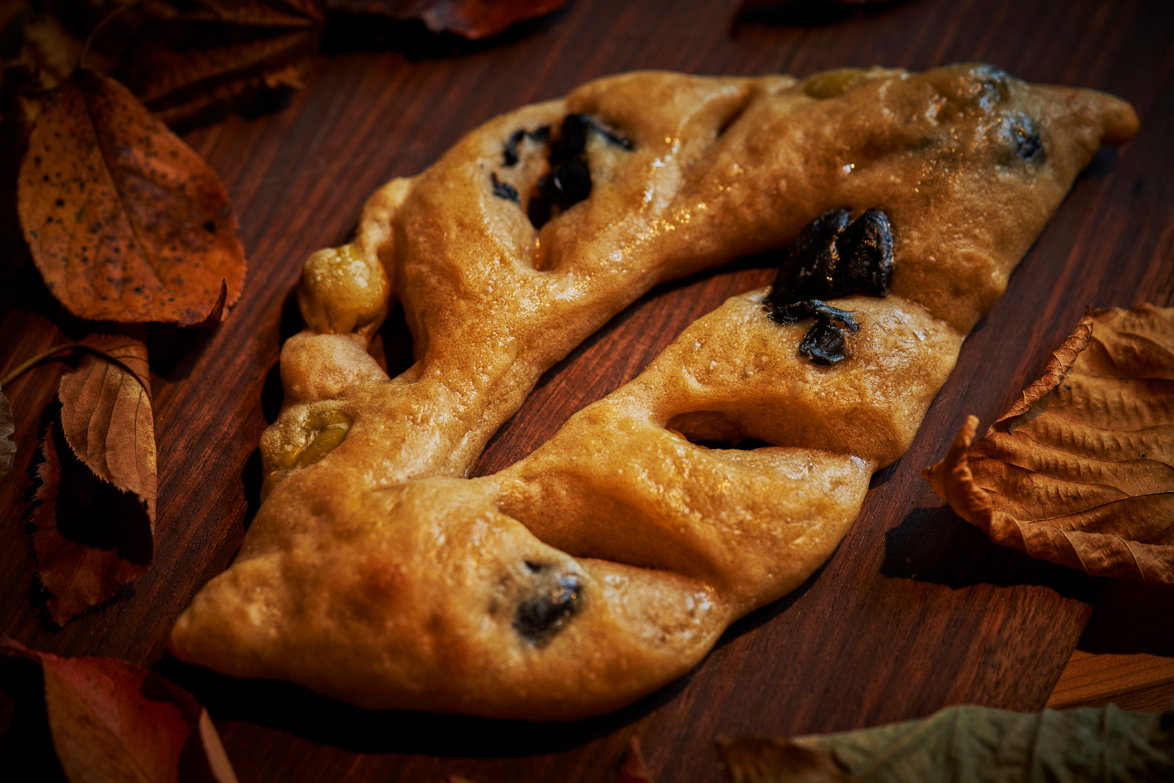 バゲット生地に2種類のオリーブを練り込み、葉っぱの形にして焼き上げた、外はカリッと中はモチっとした食感のパンです。