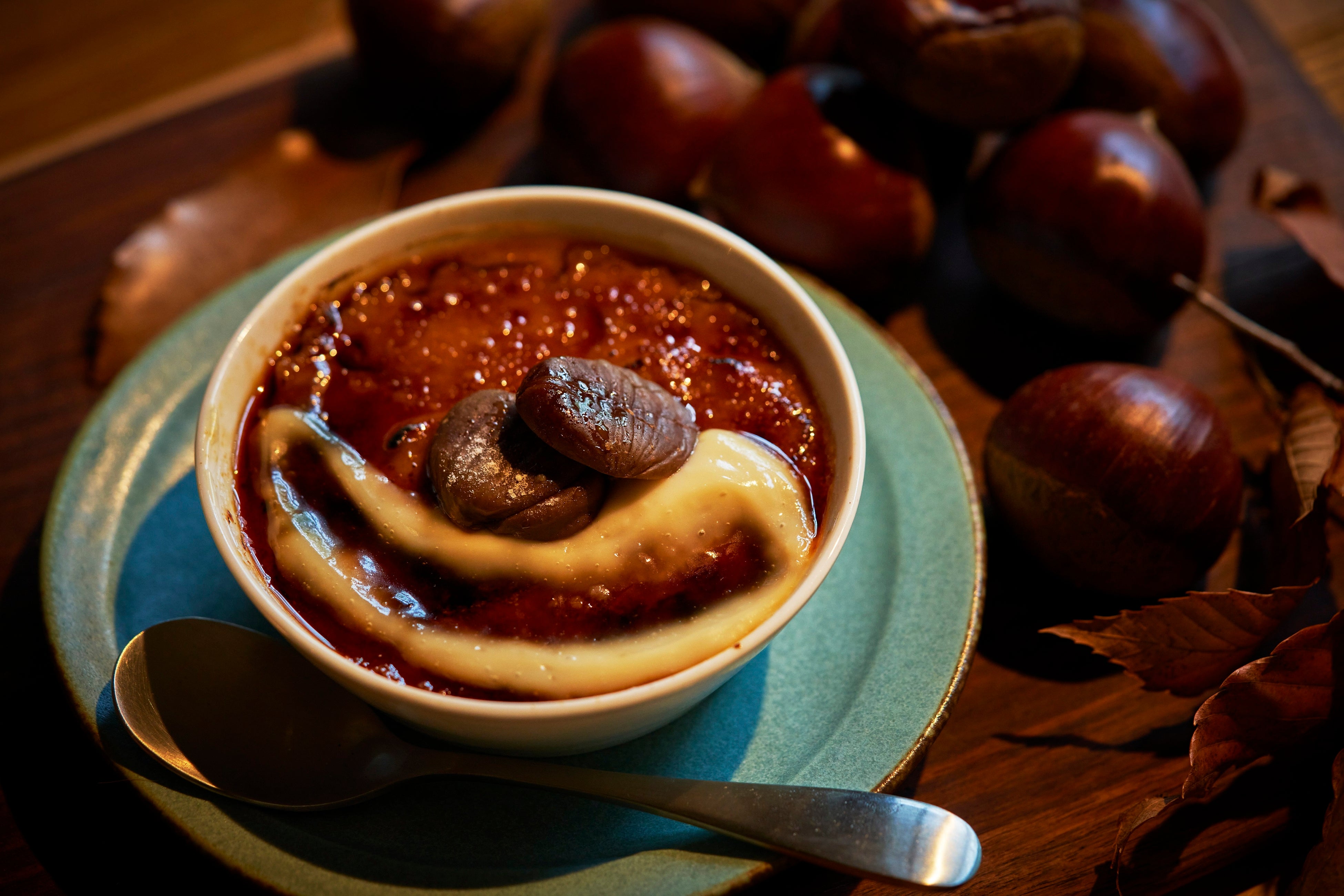旬の栗の甘さと焦がしキャラメルの香ばしさを一緒に味わえるスイーツです。