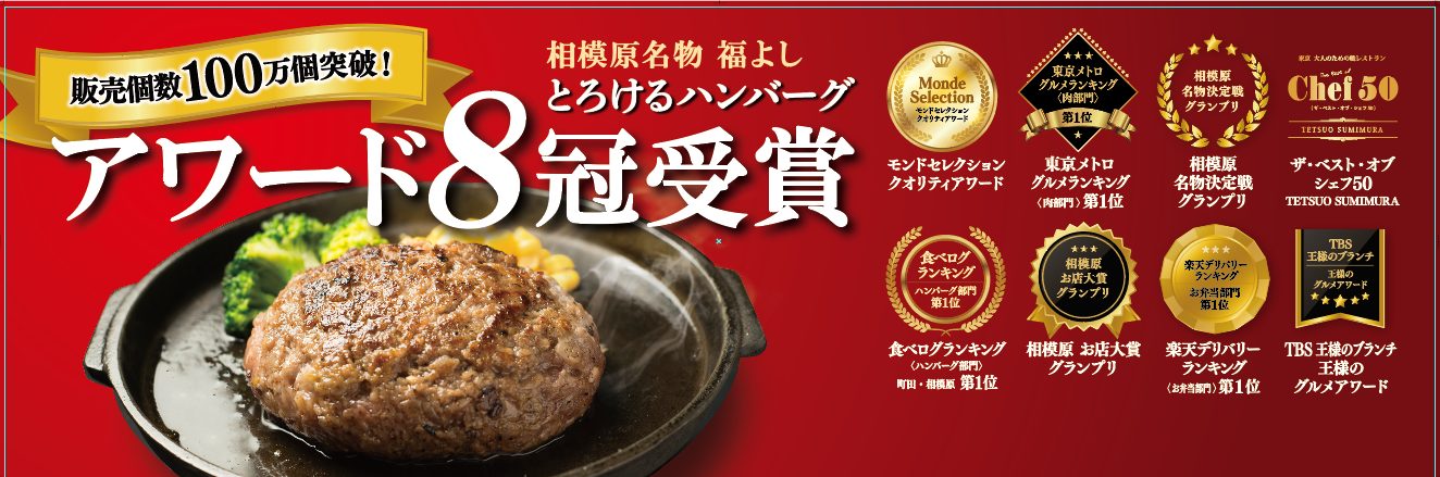 「とろけるハンバーグ」は、シャトーブリアンをハンバーグで表現したいという想いから、上質なステーキのような舌触りになるように国産牛と和牛脂を絶妙なバランスで配合しました。また研究し尽くしたスパイスの調合により、かつてない食感と旨味を生み出すことに成功。まるで「お肉のムース」と称され、モンドセレクションをはじめ、数々の賞を受賞。バイキング・深イイ話・サンジャポ・朝ズバなど各メディアで取り上げられ、相模原市の名物料理として国内外で毎年、約50万食以上を提供させていただいています。松阪牛とろけるハンバーグ準米弁当に使用されるお米は次長課長の河本準一がプロデュースするお米の「準米」を使用。河本が出会った、大分県の『朝来米(あさくまい)』。「このおいしいお米を全国的に普及させたい」という思いで生まれた『準米』が日本から世界の人々を笑顔にするためにニューヨークに飛び立ちます。