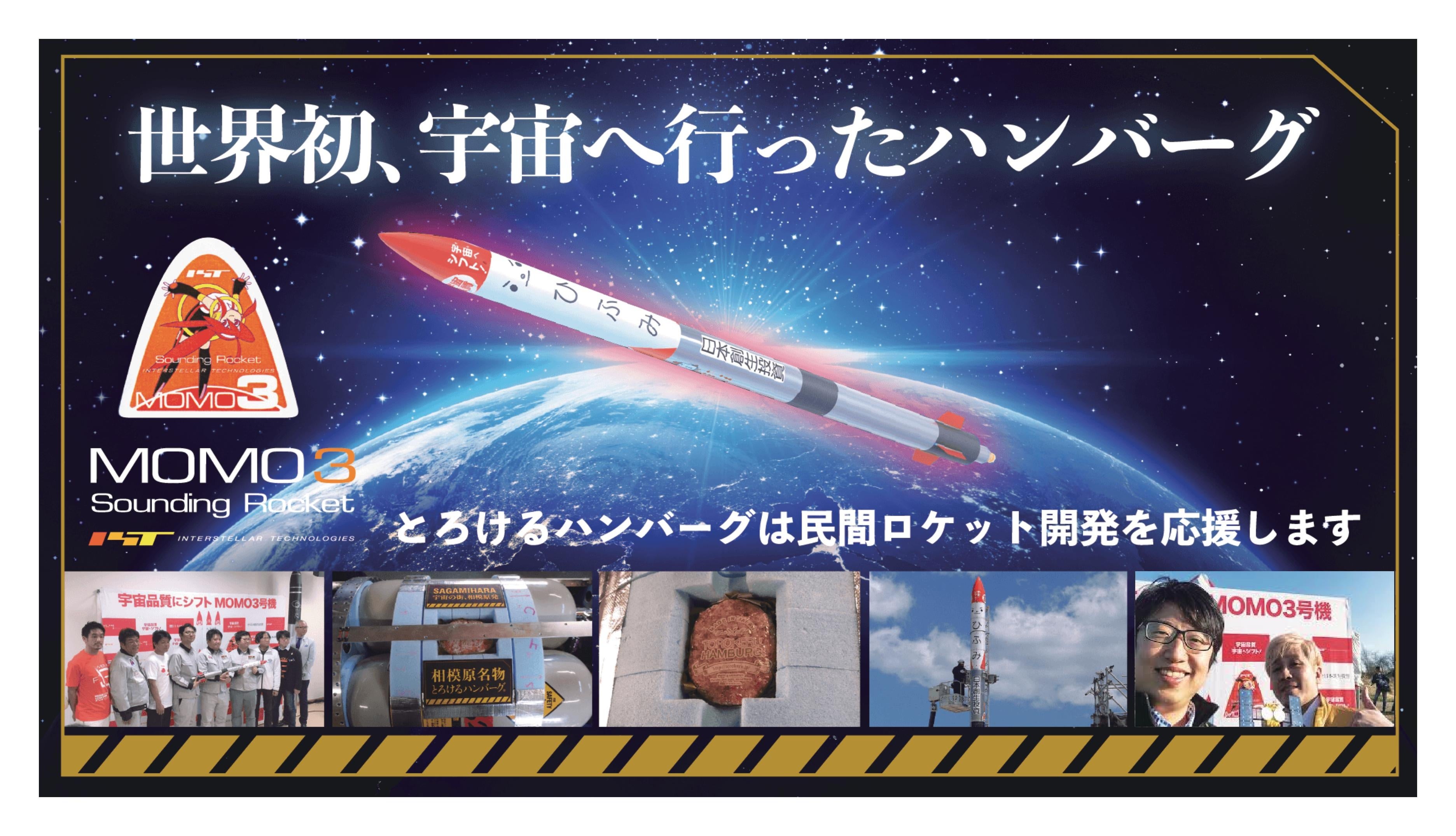 「とろけるハンバーグ」は、ホリエモンこと堀江貴文さんが創業した宇宙ベンチャー・インターステラテクノロジズ株式会社(北海道大樹町)が2019年4月、民間単独開発のロケットとして国内初の快挙となる打ち上げに成功した「MOMO3号機」に150gを搭載。史上初の「宇宙に行ったハンバーグ」として、読売新聞をはじめ各メディアに取り上げられました。このたび、「とろけるハンバーグ」は宇宙から地球に帰還、松坂牛を使用して2022年10月28日に日米で同時発売します。