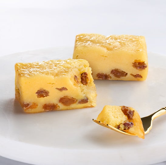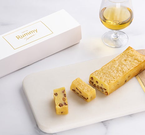 厳選したレーズンをラム酒に長時間漬け込むことで、みずみずしいラムレーズンが仕上がります。ホワイトチョコレートタイプのテリーヌ生地にラムレーズンを贅沢にとじこめました。