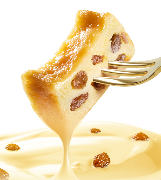 厳選したレーズンをラム酒に長時間漬け込むことで、みずみずしいラムレーズンが仕上がります。ホワイトチョコレートタイプのテリーヌ生地にラムレーズンを贅沢にとじこめました。