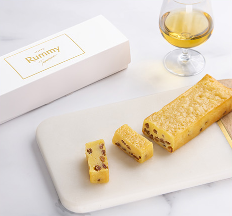 ラミーテリーヌの濃厚でしっとりした美味しさをそのままに、特徴である「秘伝のラムレーズン」を存分にお楽しみいただけるホワイトチョコレートタイプです。テリーヌ生地には、たっぷりとラムレーズンをとじ込めることで、華やかなラムの香りとふくよかなレーズンの味わいが口の中で広がります。大人がときめくラミーテリーヌをご堪能ください。