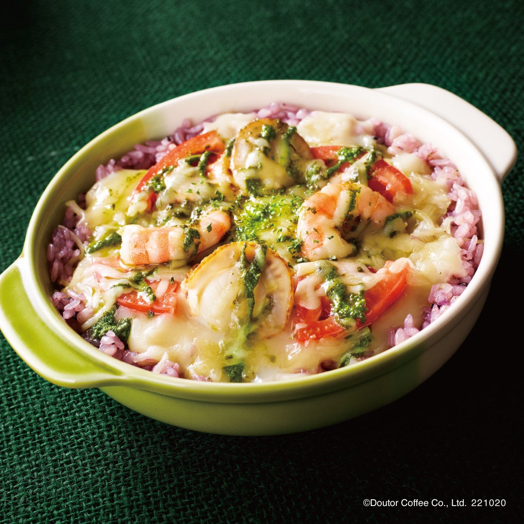 新たに帆立を加え、2種の魚介を使用したドリアに仕上げました。また、以前よりもチーズを”1.5倍”に。