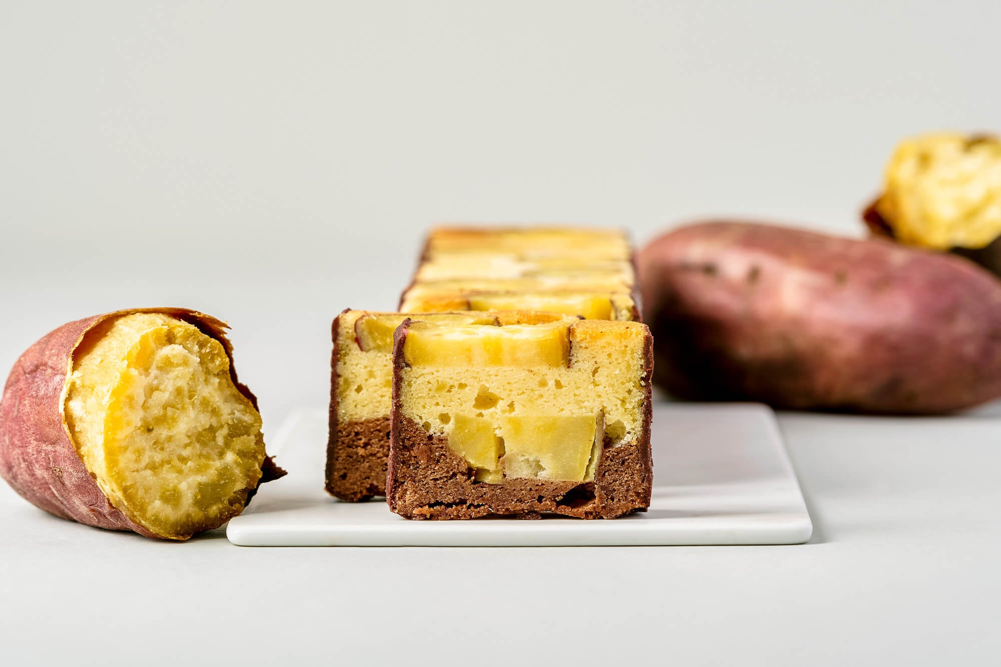 香りや甘みを味わうのはもちろん、食感もそのまま楽しんでいただけます。シエラネバダ産カカオ豆を使った果実味を感じる軽い味わいのチョコレート生地が、なると金時の上品な甘味に寄り添います。