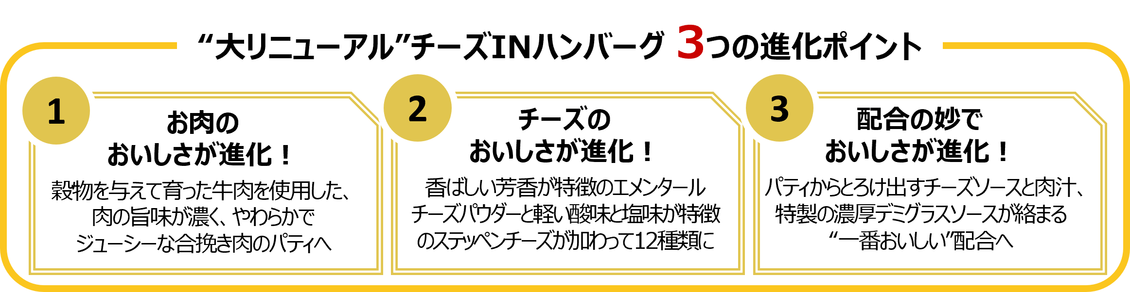 【人気No.1メニュー“史上最高レベル”へ!新「チーズINハンバーグ」誕生】