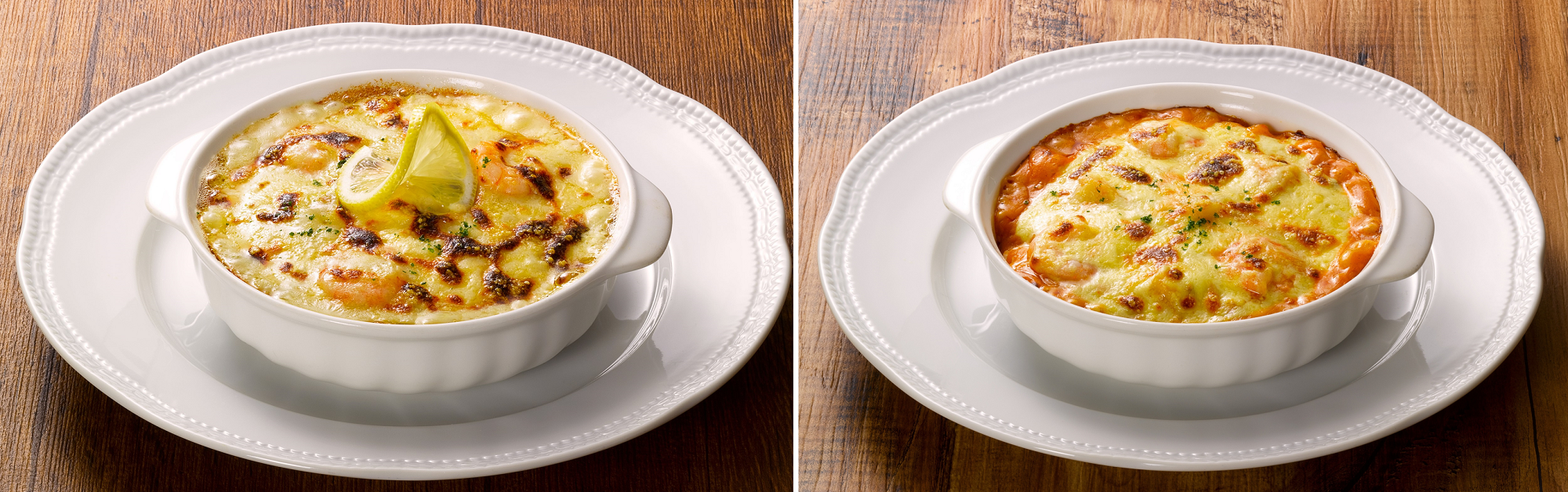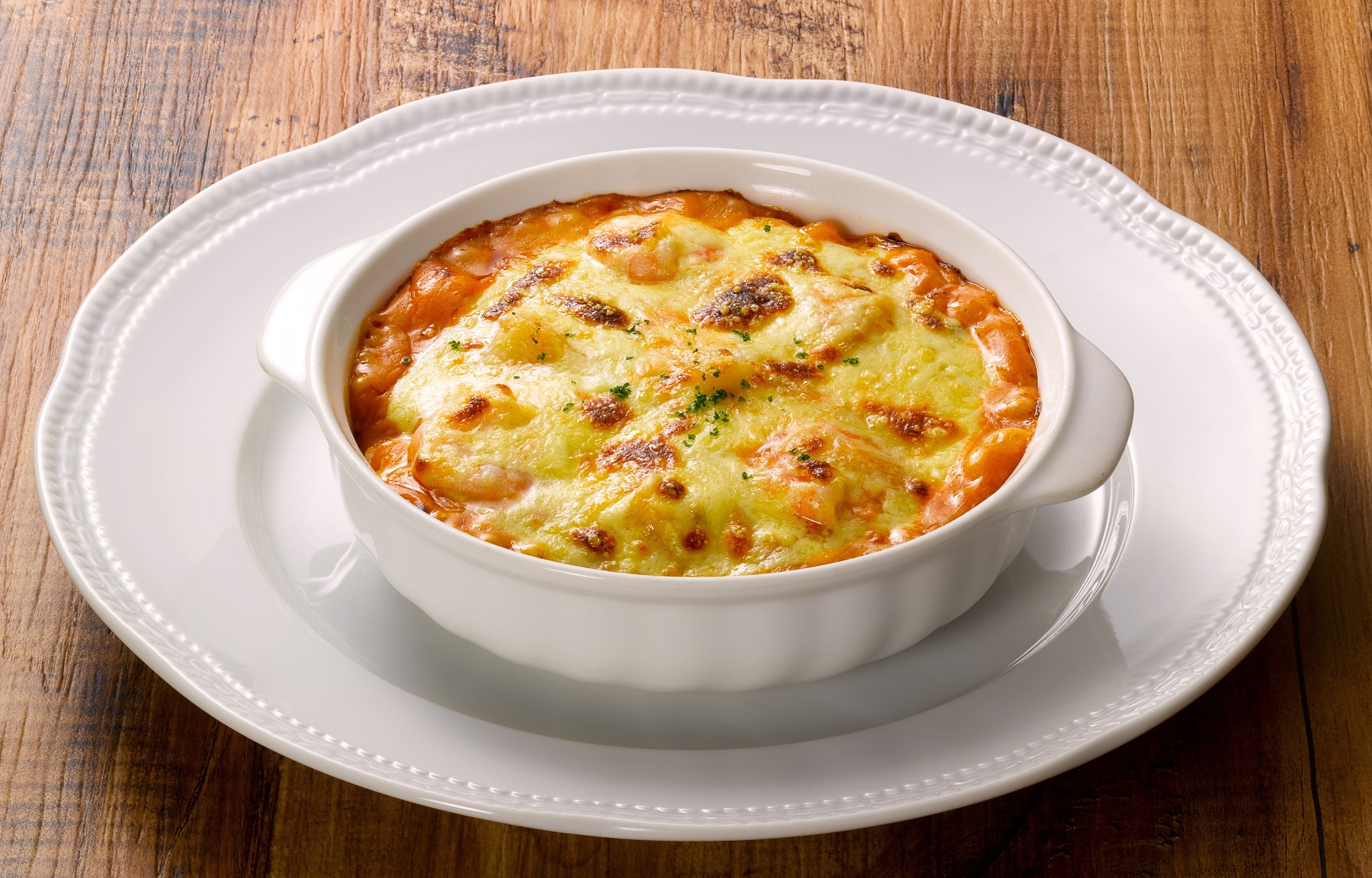 海老の旨味が凝縮されたアメリケーヌソースと濃厚でコクの深いモルネソースをかけて焼き上げた、魚介本来の美味しさを堪能できるごちそうドリアです。