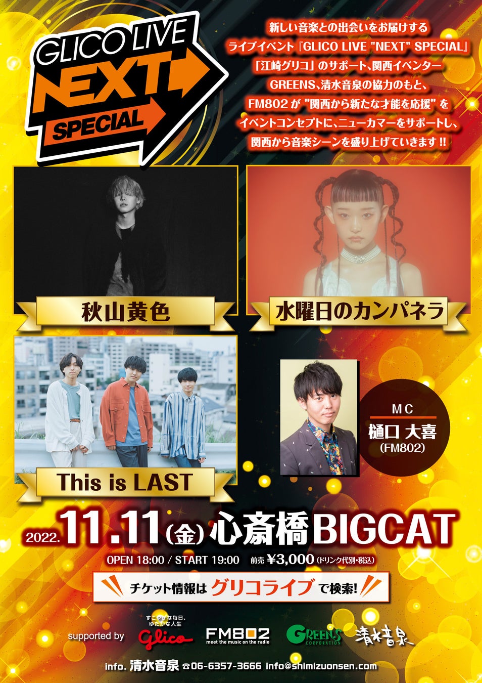 11月11日は「ポッキー&プリッツの日」でスペシャルに。BIGCATを会場に、秋山黄色/水曜日のカンパネラ/This is LASTが出演します。オフィシャルHP先行がさっそくスタート。10月13日までですのでお早めにエントリーしてください!