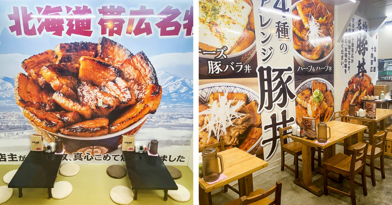 当店の豚丼は北海道 帯広名物の風味をそのままに、豪快に焼きあげ豚の旨味を凝縮した究極の一杯。秘伝のタレが食欲をそそる、一枚一枚丁寧に焼かれたお肉は一口食べれば香ばしさがお口いっぱいにひろがります。