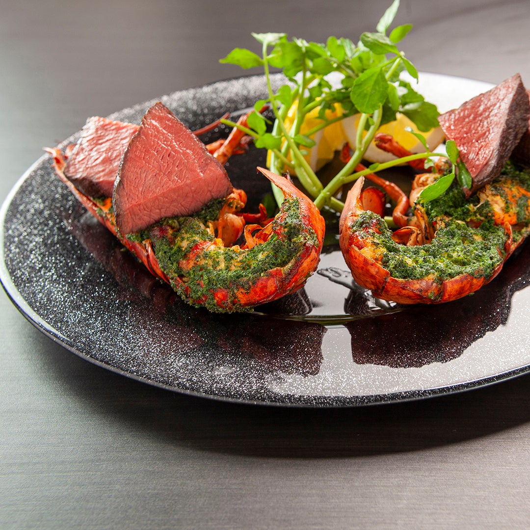 和牛ユッケ、赤海老、秋野菜等をつかった贅沢な前菜3品、圧巻の焼物6種、お食事ものは赤ワインをたっぷり使った『ビーフストロガノフ』デザートにはご来店時にお楽しみの「赤葡萄のナージュ」をお召し上がりいただきます。