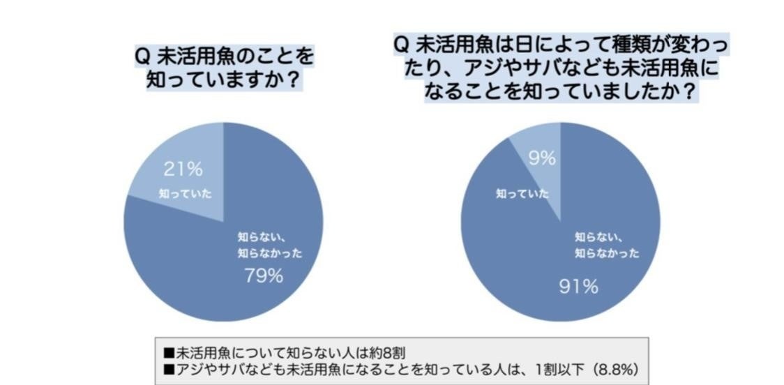 ですが、熱海に住む・暮らす方々を対象に約50名にアンケートを実施したところ「熱海で獲れる魚の種類をどれくらい知っていますか?」という質問に対して、「0〜5種類未満」と答えた方が半数以上、「10種類未満」が約90%でした。未活用魚についても約8割が「知らない」という結果からも、海が目の前にあってもどんな魚が獲れているのか、海がどうなっているのかを知らない人が多いということがわかりました(熱海千魚ベースプロジェクト調べ/熱海市で暮らす・働く方々約50名へアンケートを2022年に実施)。