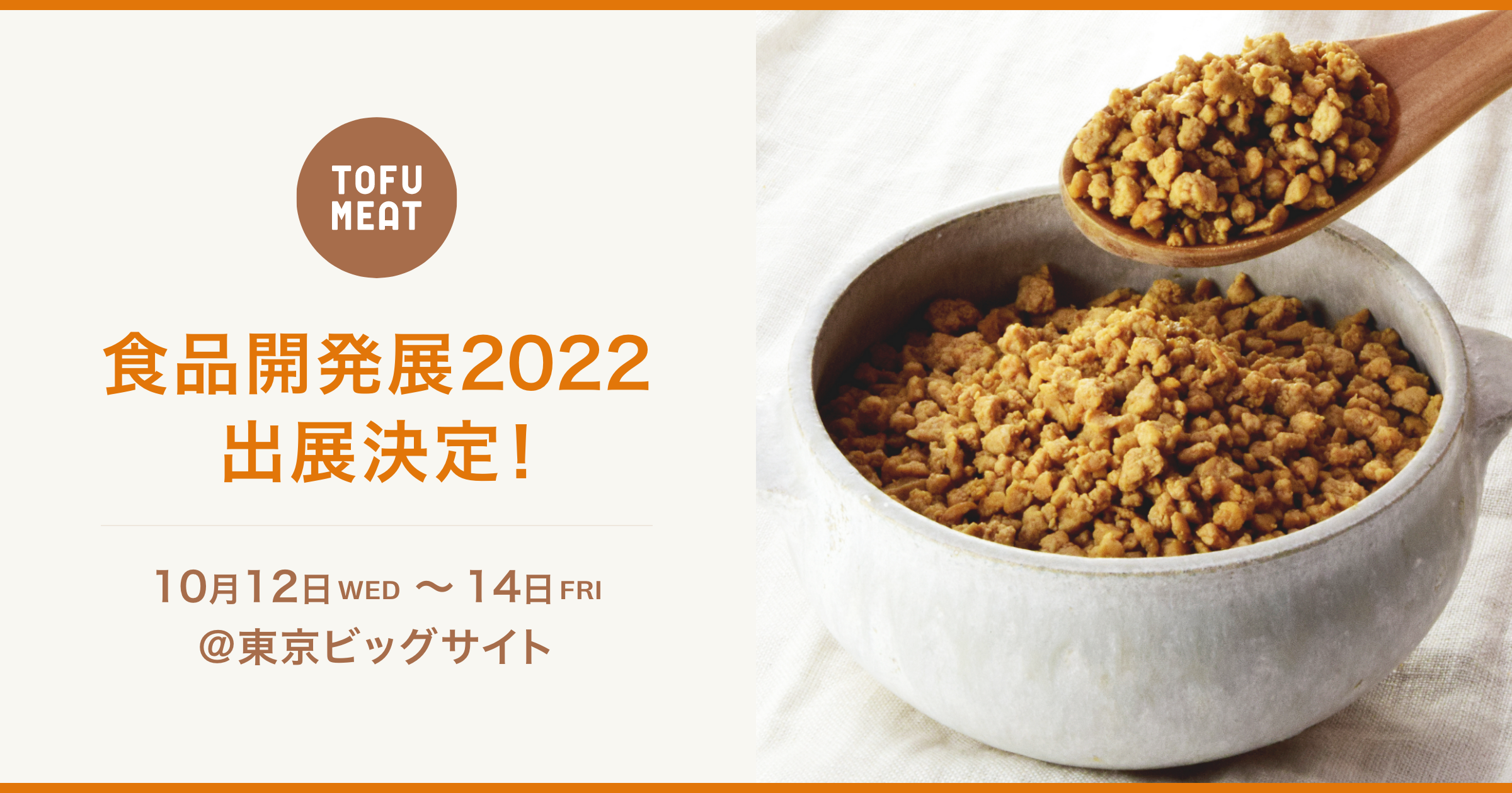 豆腐を原料とする植物由来100%の新食材「TOFU MEAT(トーフミート)」を開発・製造する株式会社トーフミート(本社:山口県宇部市、代表取締役社長:村上 英雄/以下「トーフミート」)は、2022年10月12日(水)~14日(金)の3日間、食品の4大テーマである健康、美味しさ、安全・品質、フードロングライフに関わる専門展示会「食品開発展2022」に初出展いたします。