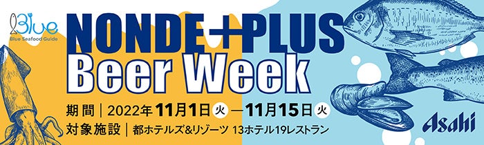 都ホテルズ&リゾーツでは、2022年11月1日(火)から2022年11月15日(火)までの期間、13ホテルの対象レストラン19店舗にて「NONDE+PLUS Beer Week」を開催します。期間中、地球にやさしいブルーシーフードを使用したサステナブルなメニューをご提供します。また、対象のアサヒビール商品と、ブルーシーフードを使用したメニューをご注文の方を対象に、その場で賞品が当たるキャンペーンも実施します。飲んでプラスな“Beer Week”をお楽しみください。