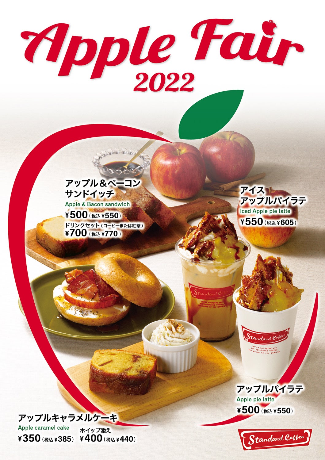 ロイヤルグループで外食事業を担うロイヤルフードサービス株式会社が展開するコーヒー専門店「Standard Coffee(スタンダードコーヒー)」は、秋に旬を迎える「りんご」を使ったドリンクとケーキ、サンドイッチを10月7日(金)より期間限定で販売しています。