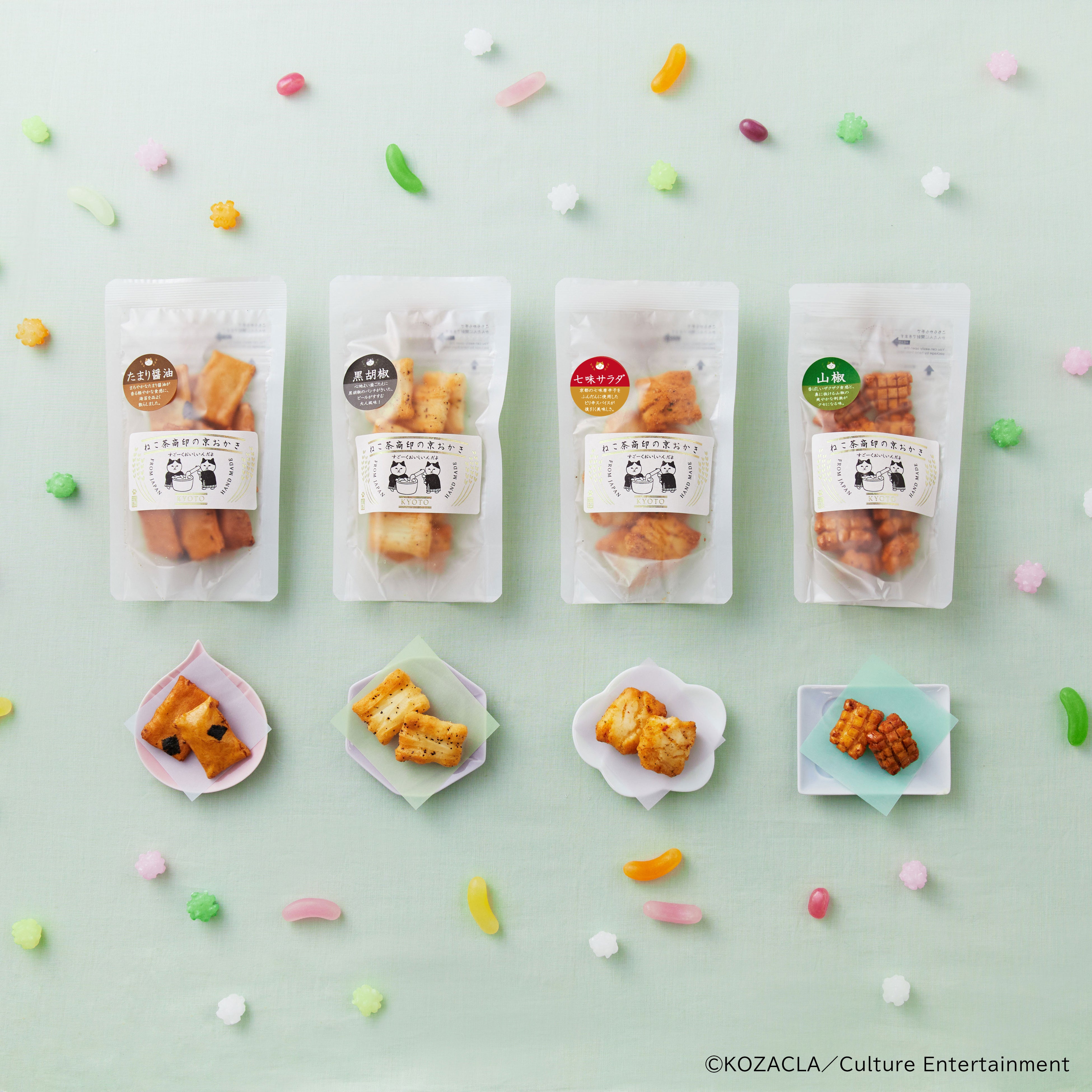 - ねこ茶商印の京おかき 全4種 各410 円(税込)