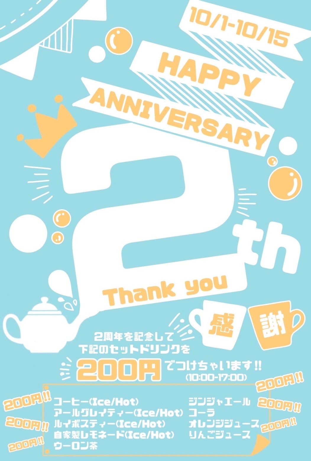 そこで10/1(土)〜10/15(土)まで2周年記念でセットドリンクを200円でご提供中です!