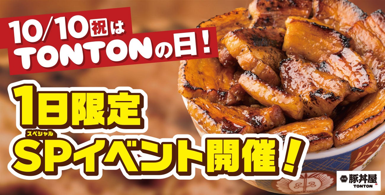 北海道・帯広豚丼が人気の「元祖豚丼屋TONTON」の郡山店と 郡山日出山店では、10/10(祝)を「TONTONの日」としてスペシャルイベントを実施いたします。