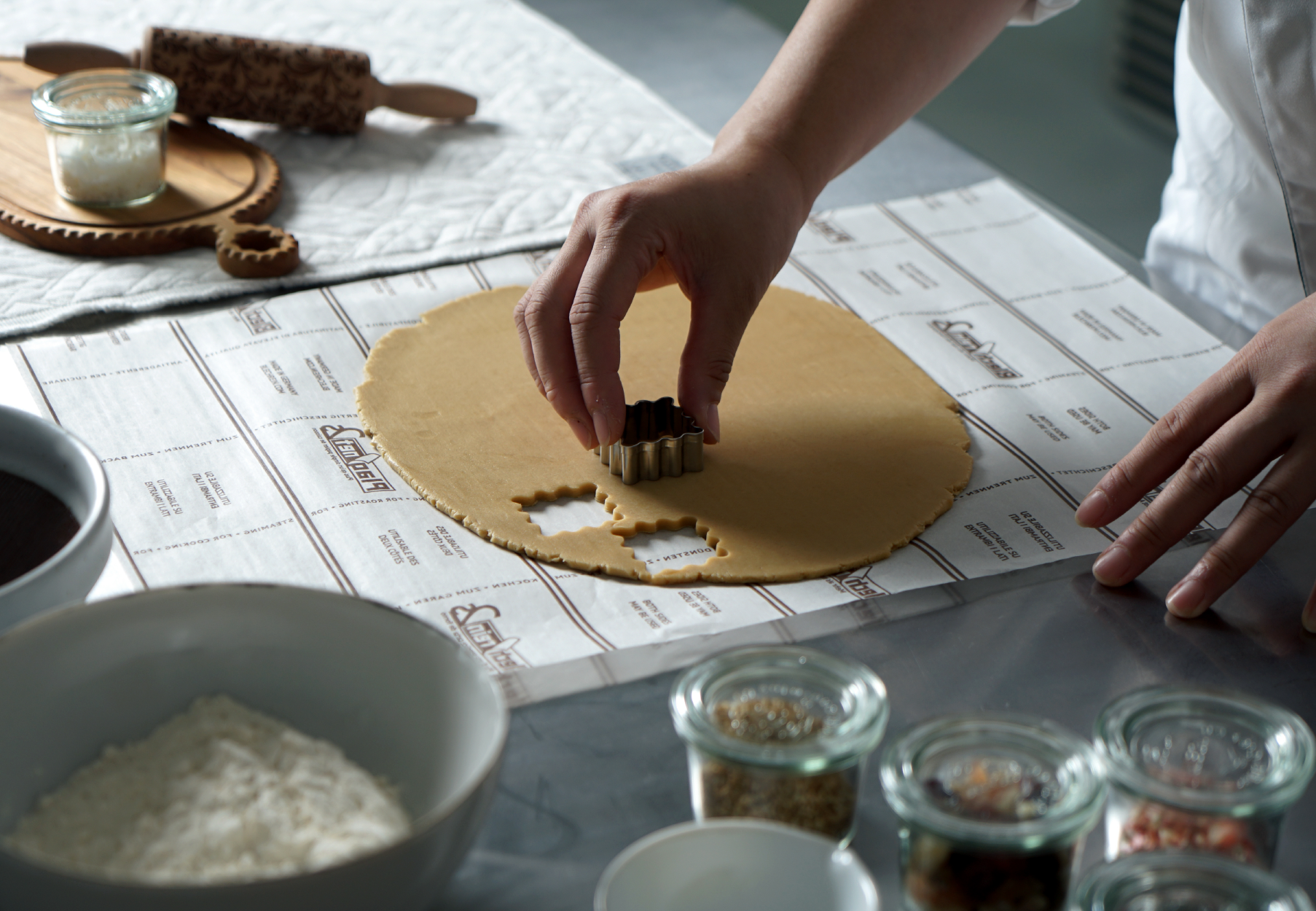 お菓子に使用する小麦は、北海道産とフランス産の小麦のみ。粉そのものの美味しさにこだわって厳選しました。特徴の異なる2種類の粉を使い分けることで、様々な食感を楽しんでいただけます。クッキーに使用するジャムなどの副素材も、すべてアトリエで手作りをしています。アイシングも天然の色素を使用することで、小さなお子様から大人まで、みんなが安心して美味しく召し上がっていただけるようにレシピを作りました。