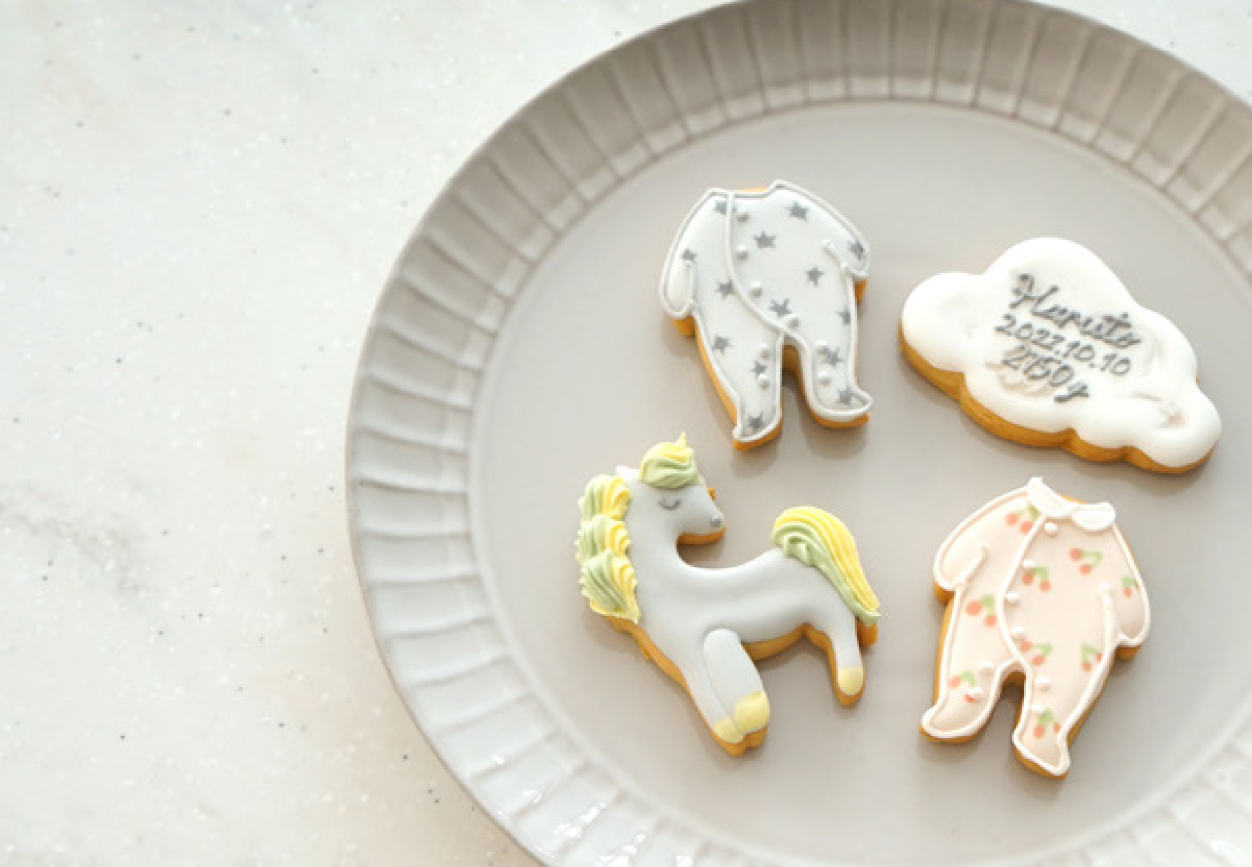 アイシングクッキーに使用するのは天然の色素。小さなお子様にも安心してお召し上がりいただけます。ヴィーガンBOXは、アイシングもヴィーガンでつくります。一般的にヴィーガンのアイシングは退色しやすいと言われていますが、Atelier 10mois のアイシングクッキーは特別な製法により、退色しづらくなっています。注文画面でクッキーに入れたい文字を入れていただくと、オリジナルのアイシングでお届けします。名前や出生体重を入れて内祝いギフトに。誕生日や記念日のギフトに、結婚式の引き出物やお手土産に。さまざまなギフトシーンにご利用いただけます。