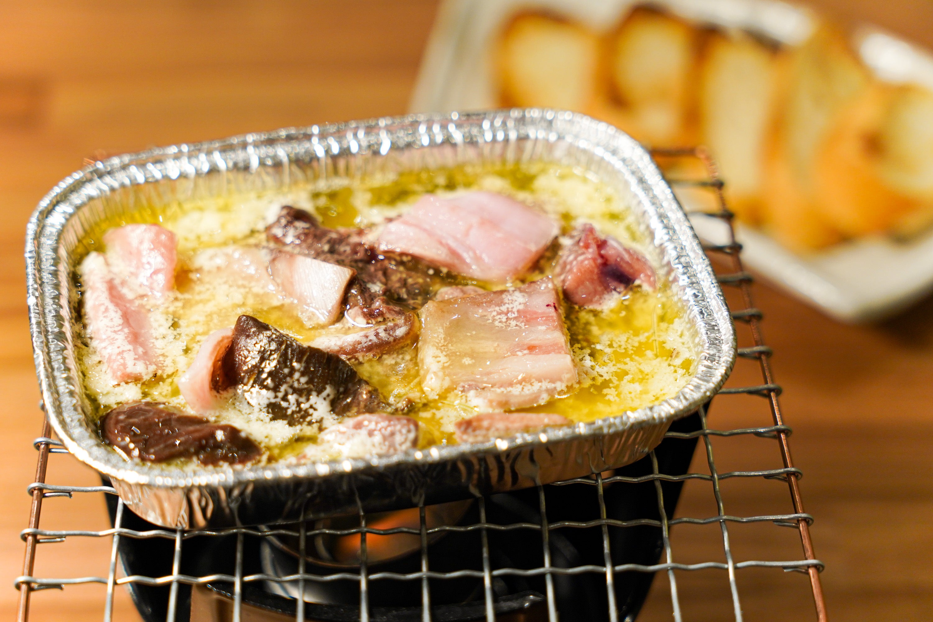 アカマル屋の名物は「もつ煮込み」「串焼き」「出汁煮込みおでん」ですが、『アカマル屋鮮魚店 大山店』では自慢の沼津港直送の「鮮魚」をメインに使った刺し身盛り合わせ、お刺身で食べられる鯵をフライにした「半生アジフライ」や「活き車えび」、まぐろを使ったアヒージョ「ツナ~ジョ」など他ではたべられない逸品をお手頃価格で提供いたします。
