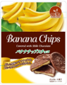 商品特徴:カリッと食感のバナナチップスを、あまいミルクチョコレートで包みました。