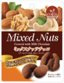 商品特徴:飴がけした香ばしいナッツ(アーモンド・くるみ・カシューナッツ)をミルクチョコで包み、ココアパウダーをまぶしました。