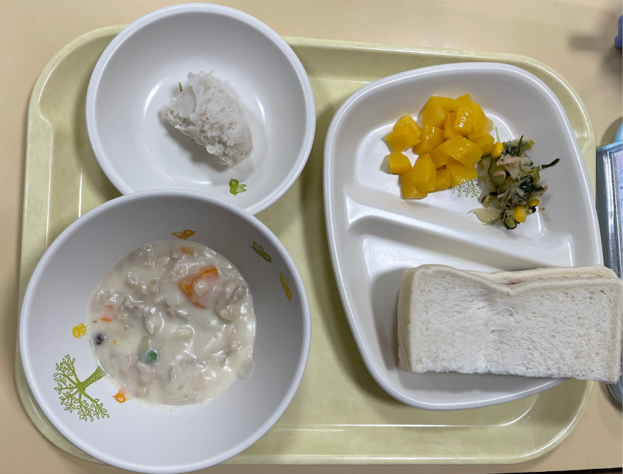 給食が食パンだったので、小麦製品との味の違いも比べられました。(*写真左上が蒸しパン)