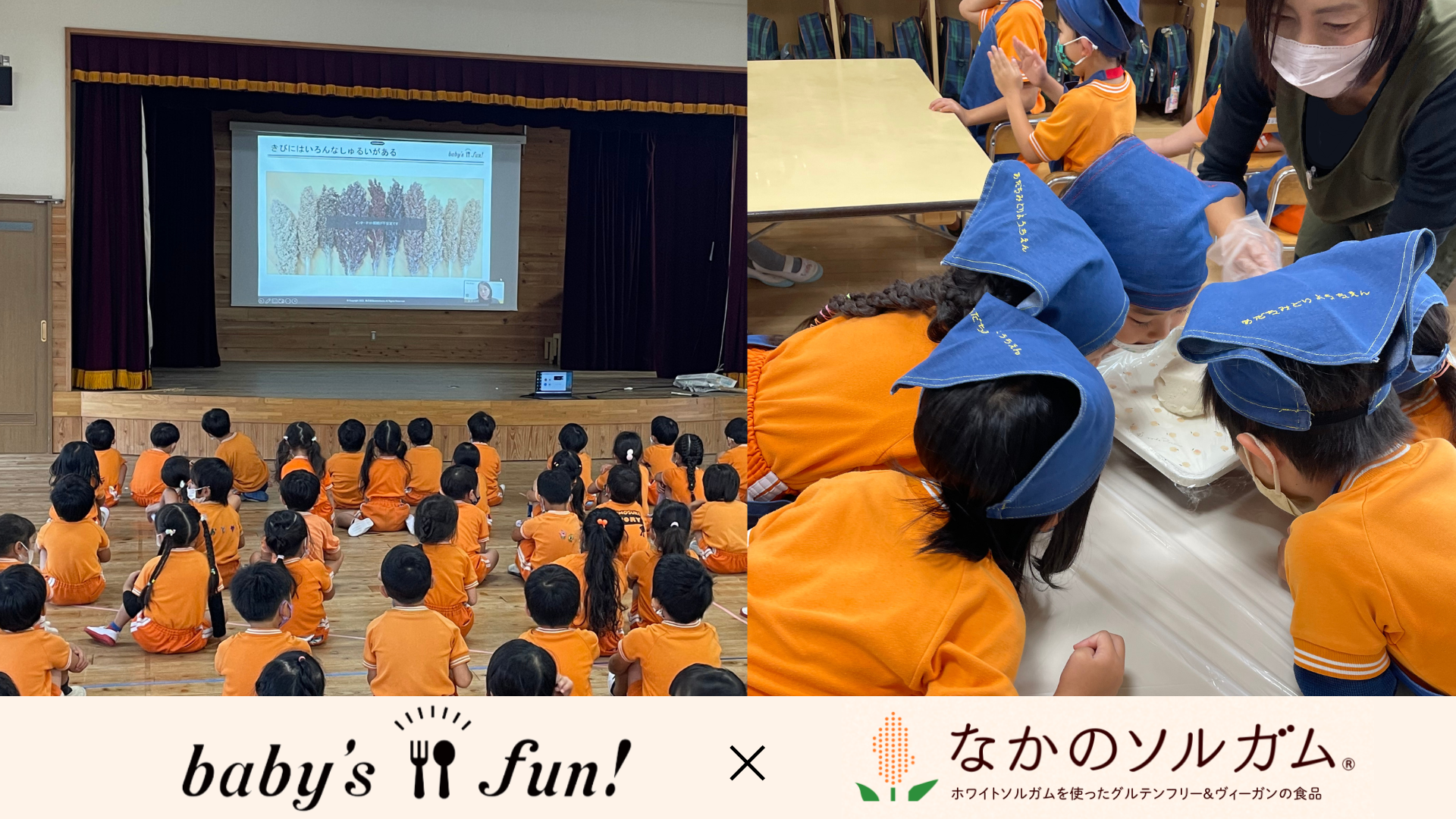 保育園給食を作業効率化する食材キットbaby’s fun!を運営する株式会社sketchbook(所在地:東京都目黒区、代表取締役:多田出 昇、以下「baby’s fun!」)は、2022年10月5日、中野産業株式会社(所在地:香川県高松市、代表取締役社長:中野宏一、以下「中野産業」)の扱うグルテンフリー&ヴィーガンのスーパーフードホワイトソルガム(白高きび)を使用したオンライン食育を足立みどり幼稚園(所在地:埼玉県志木市、理事長:大熊 啓太)の園児に向け開催いたしました。食材の加工から製品ができるまでの過程を、バーチャル工場見学や製造者との交流も交え、オンラインならではの初めての体験を子どもたちは興味津々で楽しみました。最後は園での調理体験で、美味しいと楽しいを味わうひとときを過ごしました。