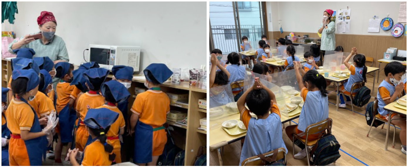 ・園で作った蒸しパンができるのが待ちきれない!出来たら全員で「いただきます」