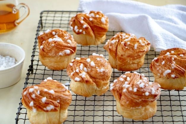 軽くふんわりとした食感を目指したシュガーバター・ラッフルは、折り込むバターと生地のバランスを何パターンも試作。また、食べたときに「サクッと」音が鳴るように形にもこだわりました。