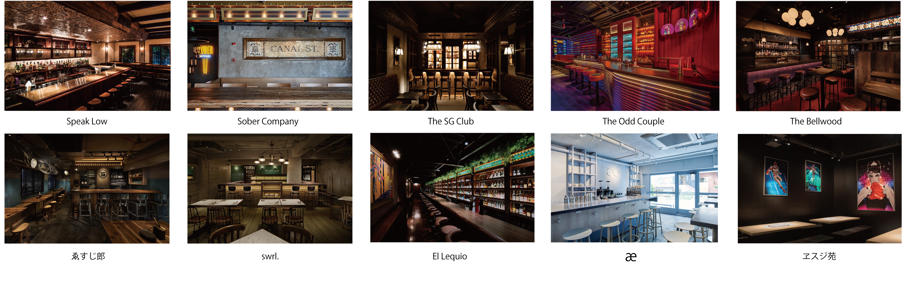 鈴木敦(Chivas Masters 2017世界大会優勝)、新井和久(Jameson Bartender’s Ball 2016世界大会優勝)を始めとして、世界や国内のコンペティションで実績あるバーテンダーが多数活躍。バーの境界を超えた新しいコンセプトのバーを国内外で開発・運営し、The World’s 50 Best Barsにおいて世界一の受賞回数を持つ。 [Web] https://sg-management.jp/ (SG Management Inc.)
