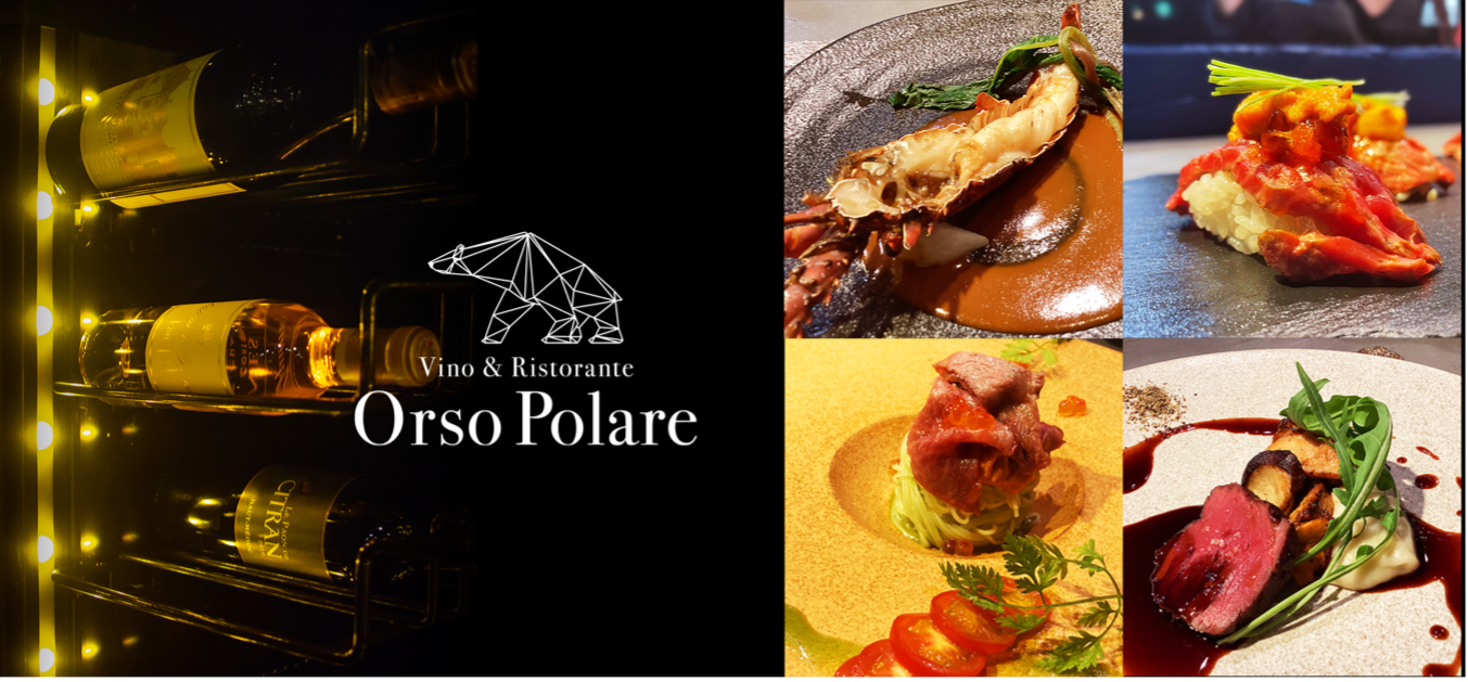 Orso Polare(オルソ ポラーレ)は、「厳選したシャンパンとワイン」と「旬の食材を用いた料理」で最高の味わいを引き出し、極上の体験をして頂けます。最上牛の肉寿司、利尻昆布やカツオ節で丁寧に出汁を引いて作ったタルタル、伊勢海老や放牧羊のラムなどの食材をチャコール調理など、コース料理をペアリングにて提供致します。
