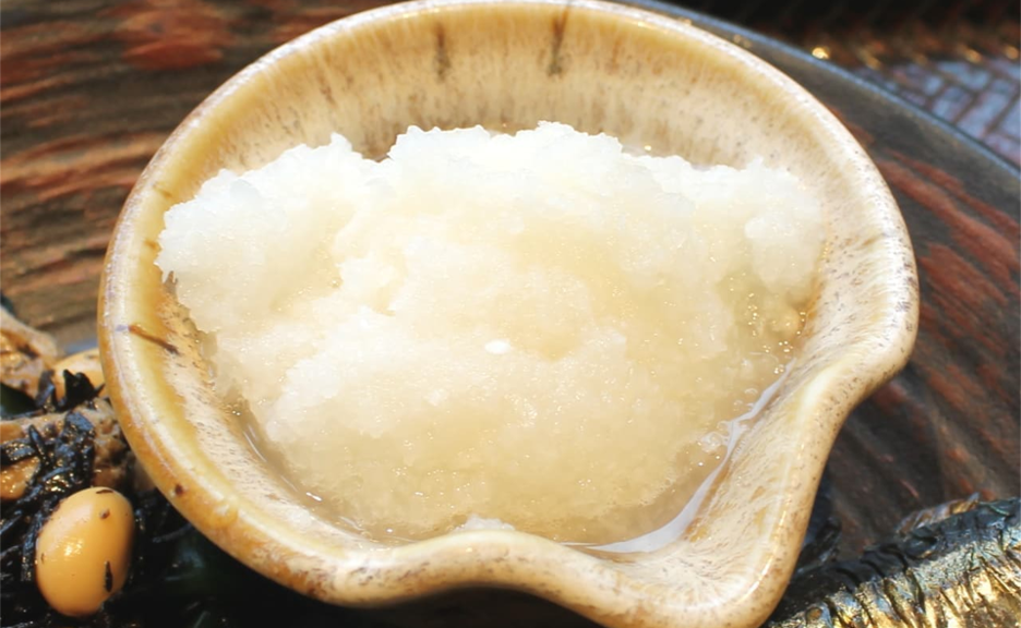 大根おろしは、すりおろすことで辛み成分が生成されますが、これが魚の脂肪分を引き立て、さらに美味しくなるポイントです。大根おろしの辛み成分は時間が経つと徐々に弱まってくるため、おろしたてが「生さんま」に合う一番いい状態です。大戸屋では、ベストの状態で美味しくお召し上がりいただけるよう、各店舗でおろしたての大根おろしをお付けしています。